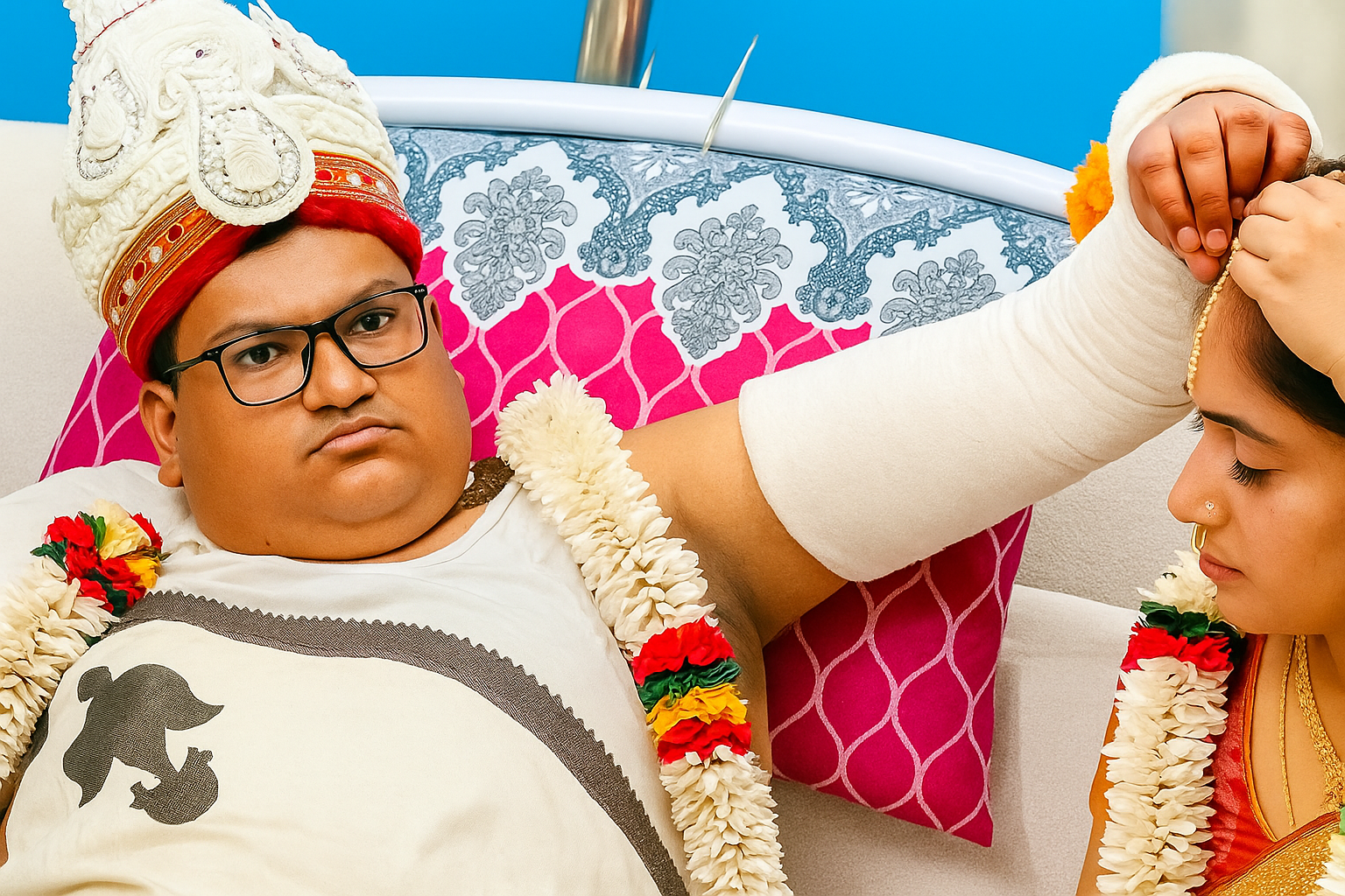 কড়চা রিপোর্ট : হাসপাতালের সাদা দেয়াল, ঔষধের গন্ধ আর মনখারাপ করা পরিবেশ। সেখানে যেন এক মুহূর্তের জন্য ফুটে উঠেছিল জীবনের সবচেয়ে রঙিন অধ্যায়—একটি বিয়ে। শয্যায় শুয়ে থাকা রোগী, হাতে-পায়ে ব্যান্ডেজ, চলাফেরার ক্ষমতা নেই; তবুও তিনি হলেন বর। আর তাঁর প্রিয় মানুষ মাথা নত করে গ্রহণ করলেন সিঁদুর—অটুট প্রতিশ্রুতির প্রতীক।