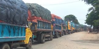 নদীতে তীব্র স্রোত, পাটুরিয়া ঘাটে পণ্যবাহী ট্রাকের ভিড়
